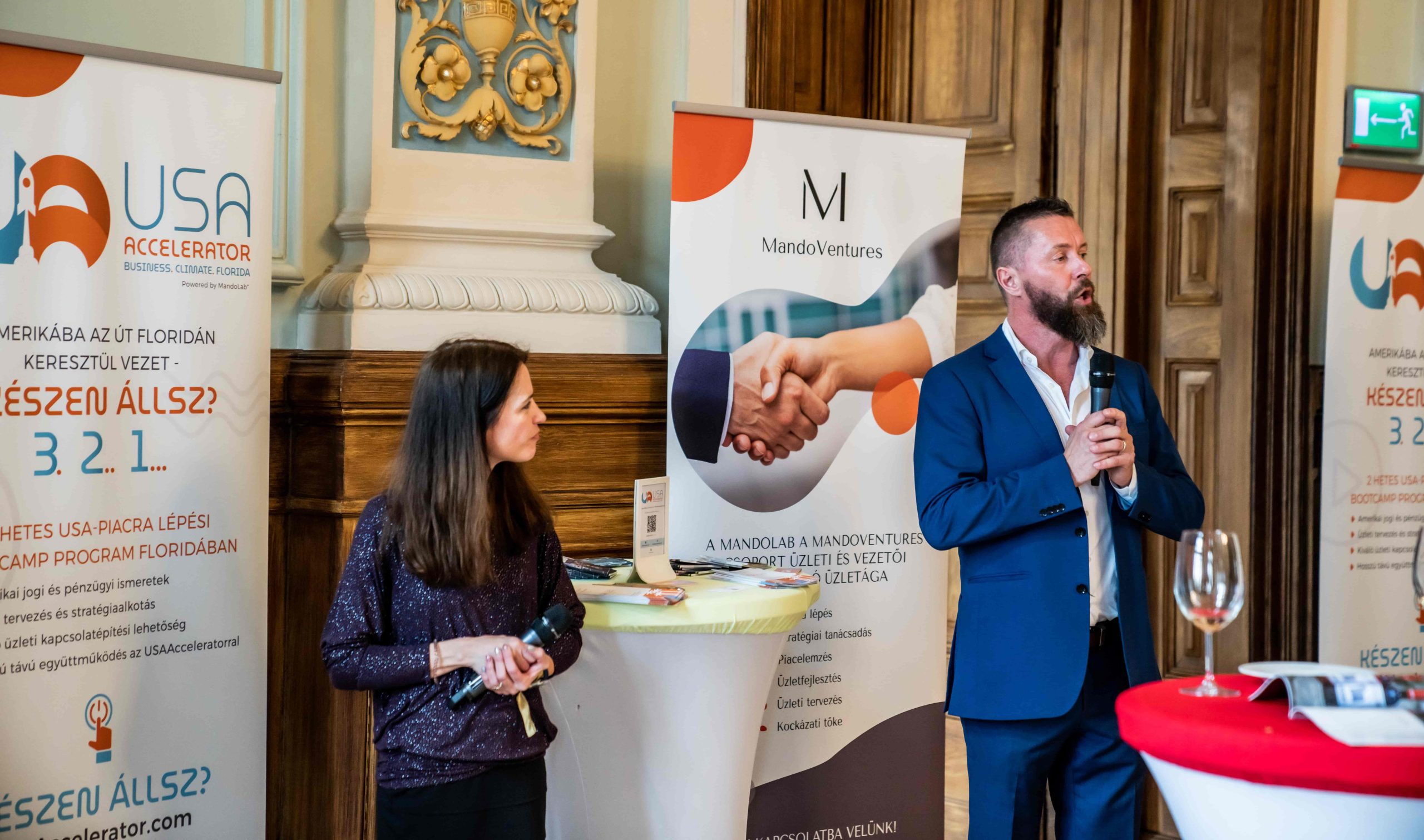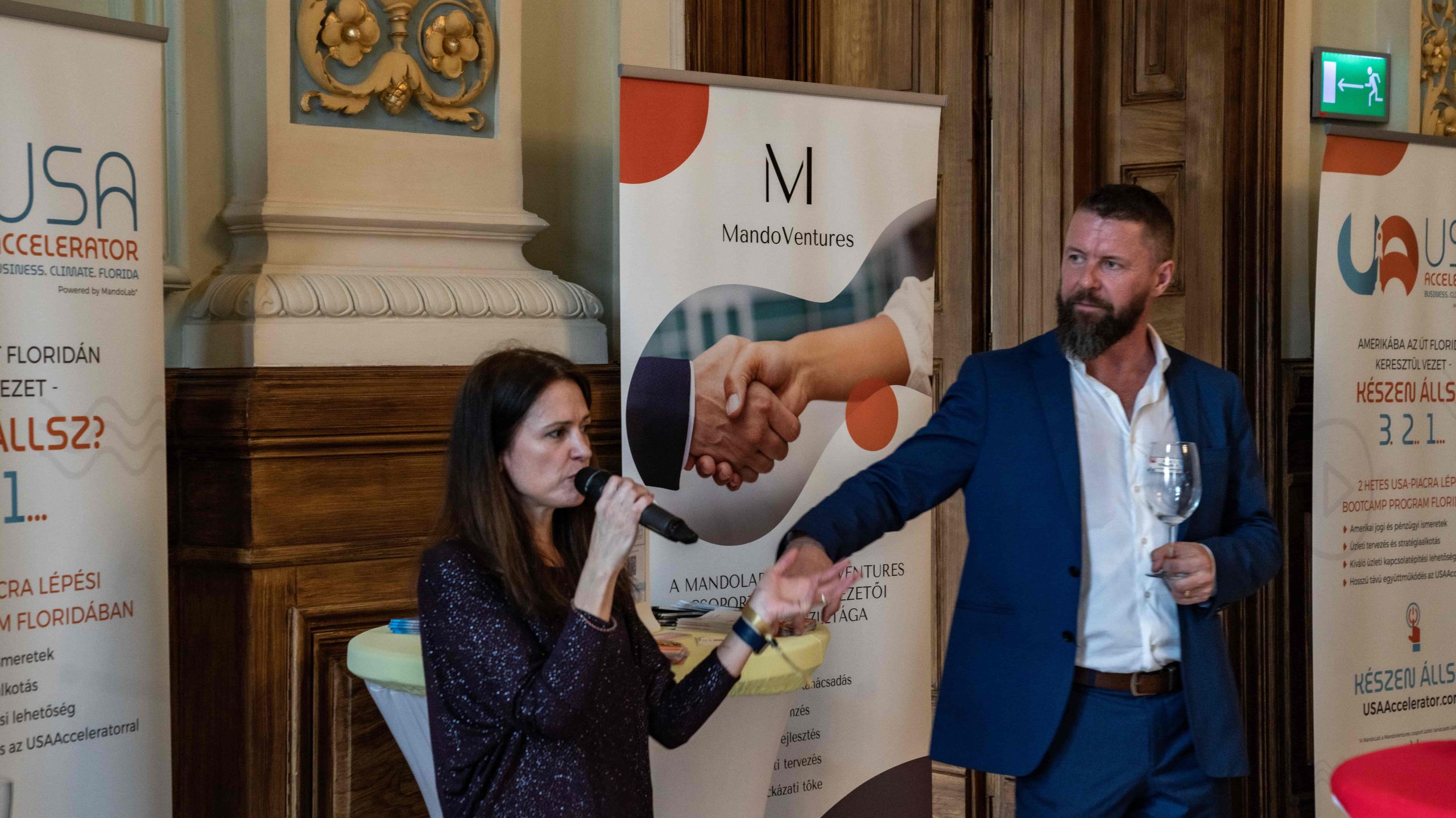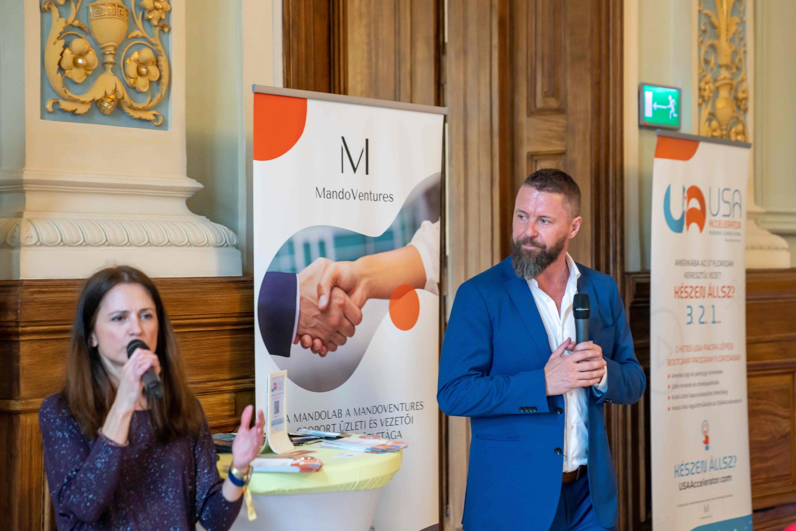 During the afternoon session, the event featured a business and education track, with Gábor Tóvári-Nagy leading the business track. The focus of the discussions revolved around high-performance organizations in the US market. Three successful businesses, including Tilesh György, Herein András with Julius K9, and BeStrong were introduced, showcasing their accomplishments in the United States and providing valuable insights to the attendees.