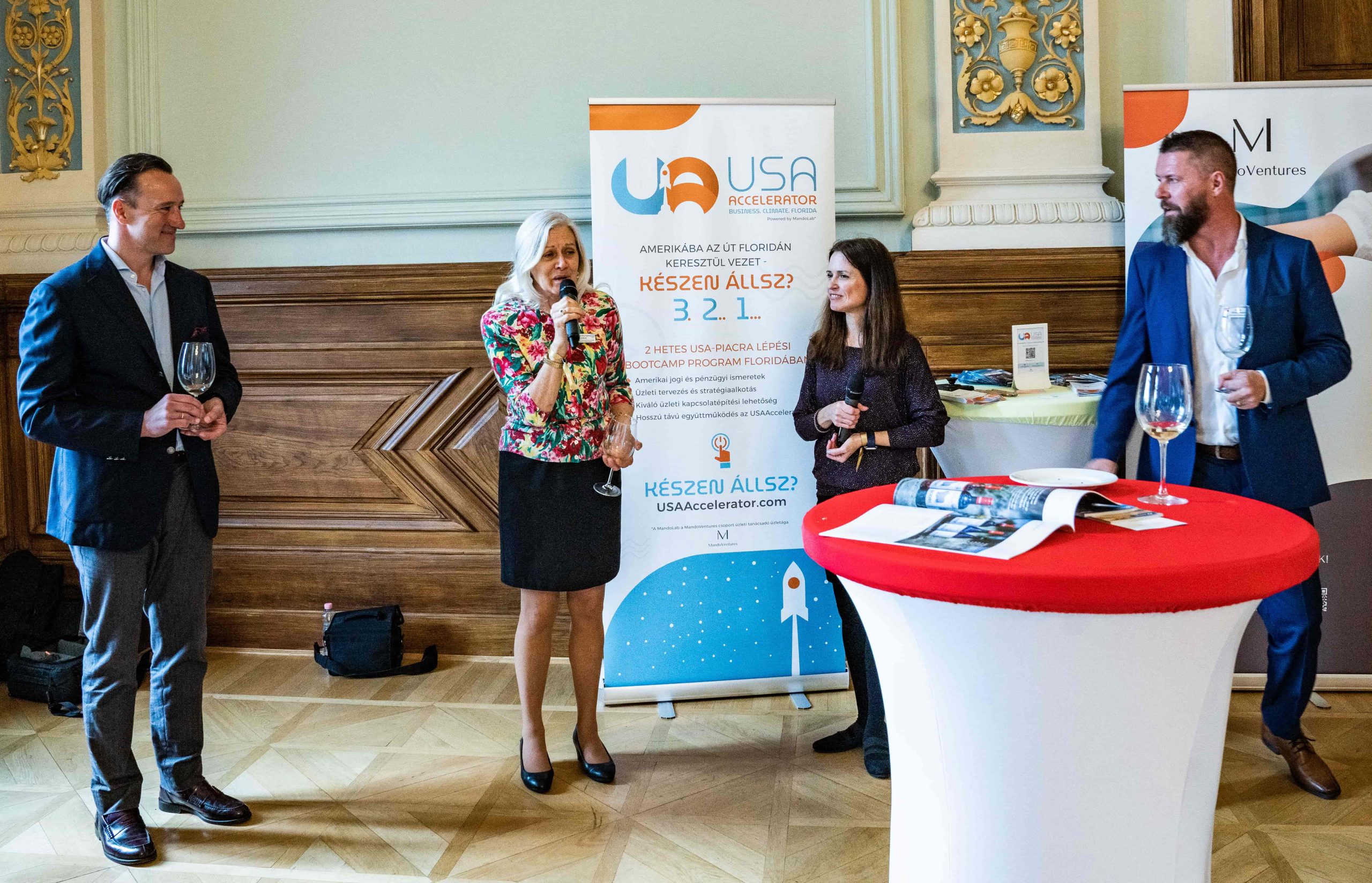 The program continued with a delightful wine tasting session, featuring the exquisite wines of Bodri Winery. Participants had the opportunity to savor the rich flavors and appreciate the excellence of Hungarian winemaking. During the wine tasting, an exciting announcement was made by the USA Accelerator and the UCF Incubation Program. They announced their collaboration for future education, soft landing programs, accelerator opportunities, and more. This partnership aims to create valuable opportunities for Hungarian businesses in the US market.