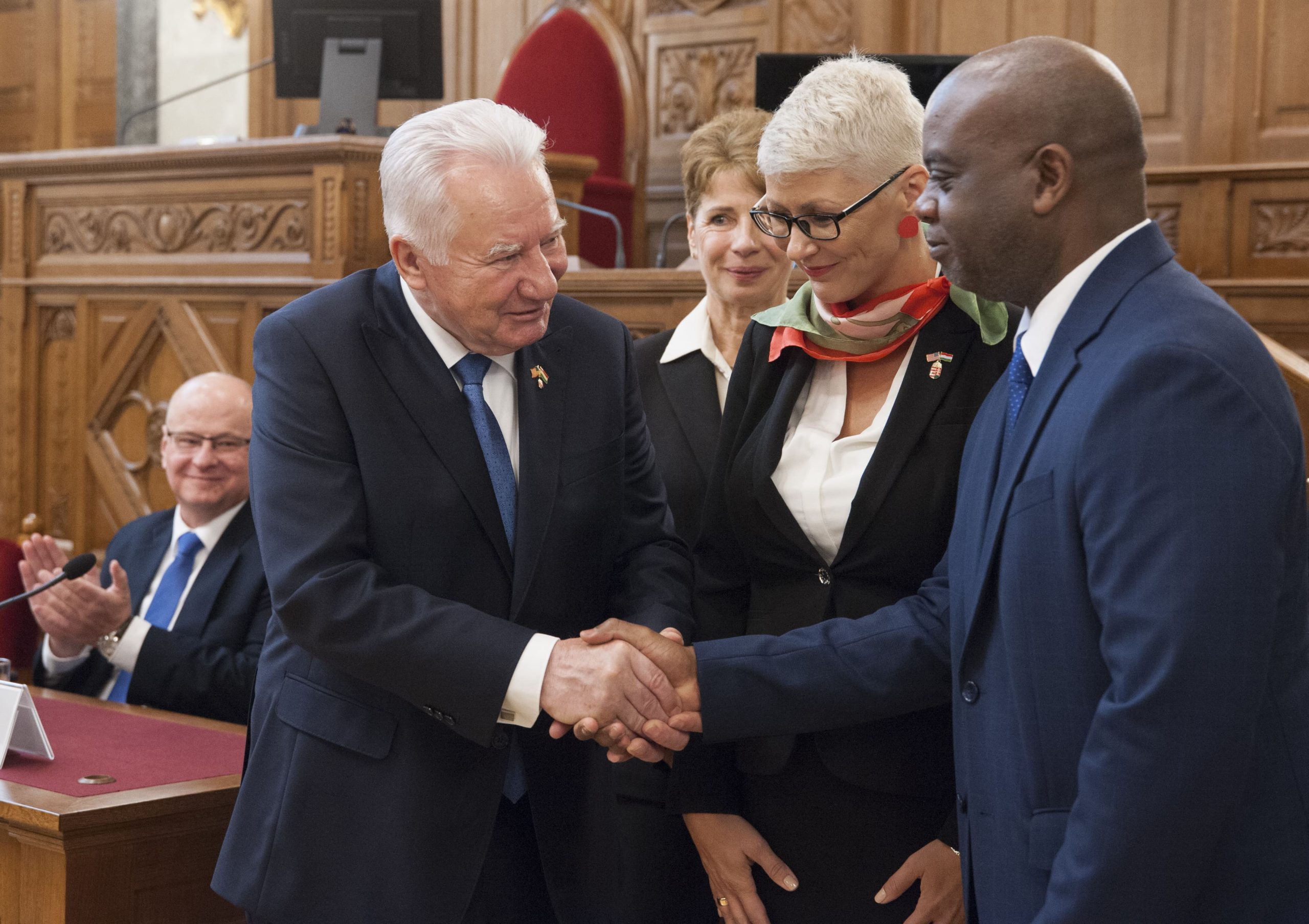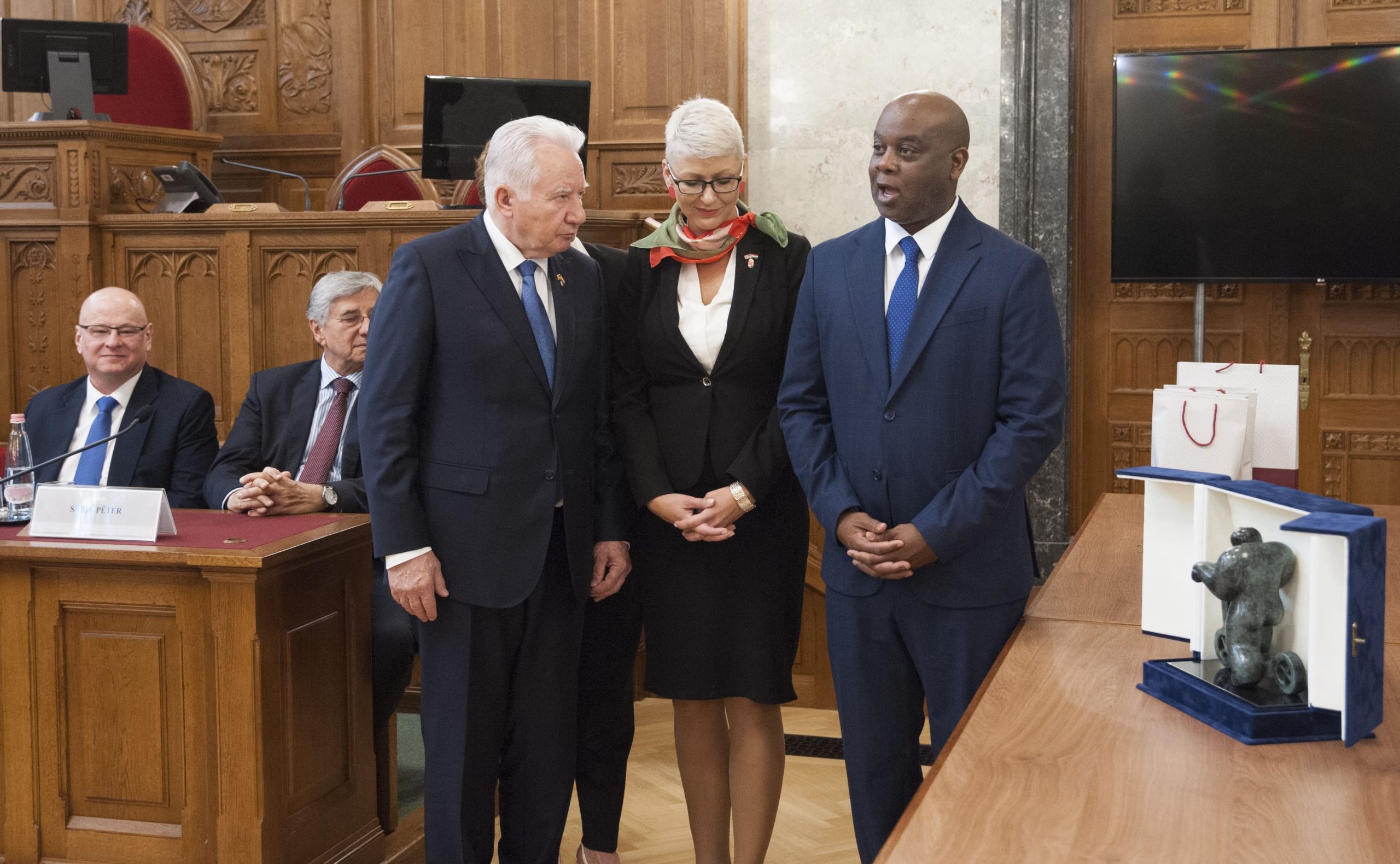 On Tuesday, the delegation had the privilege of being received by István Jakab, the Deputy Speaker of the Parliament, where a symbolic sculpture by Boldi, Rollerező, was presented to Mayor Henry of Daytona Beach, Florida. The sculpture represents the hope that it will be realized in its full size in the city of Daytona Beach, symbolizing the strong ties between the two regions.