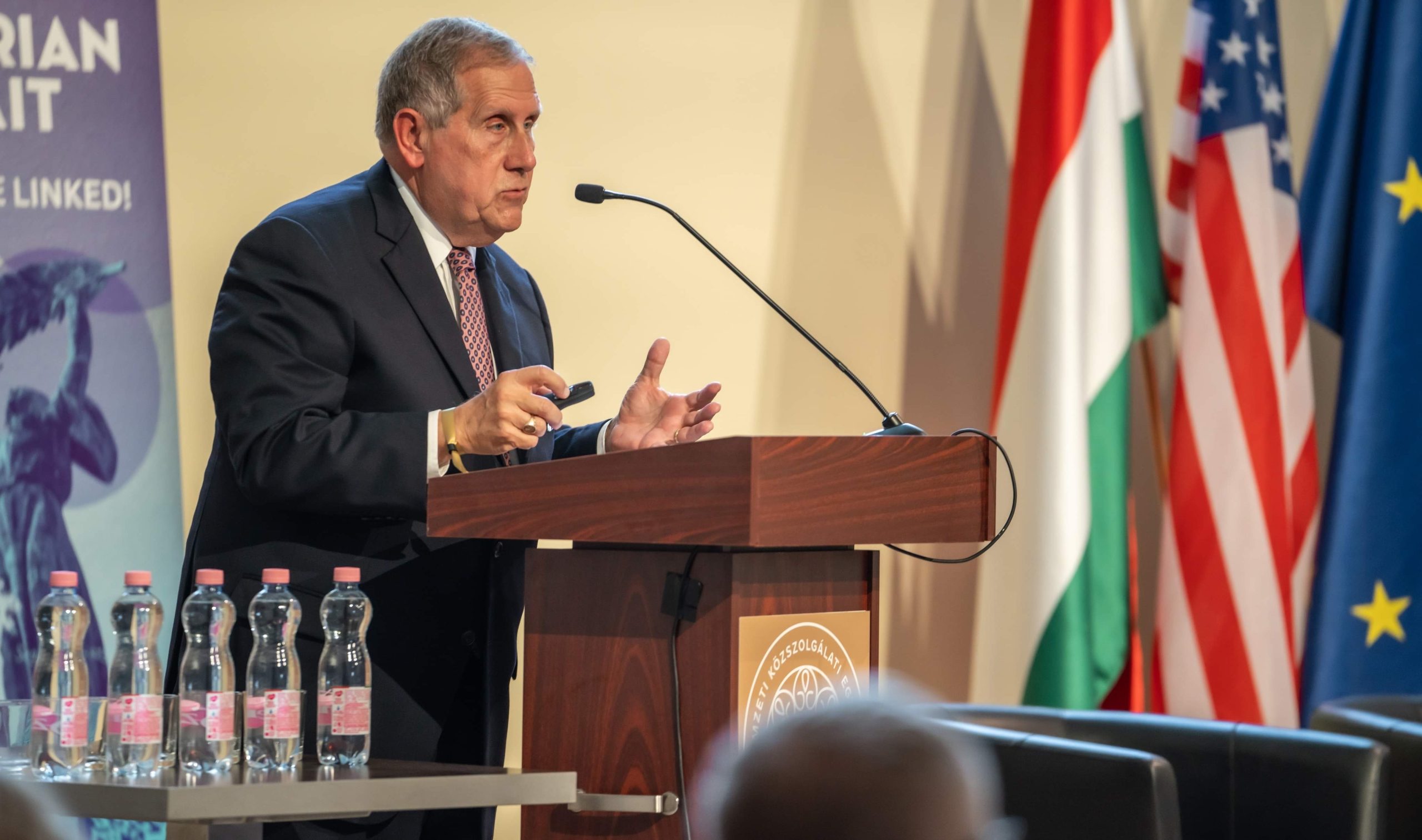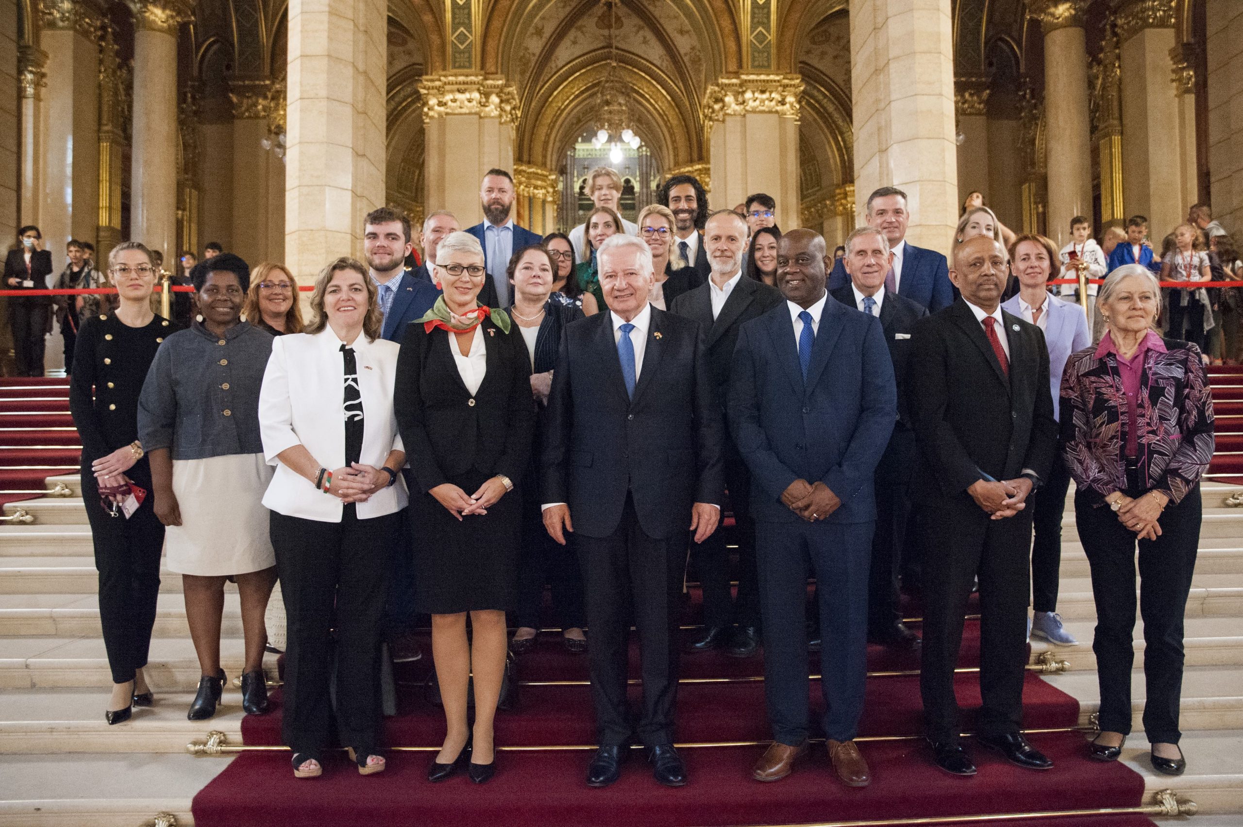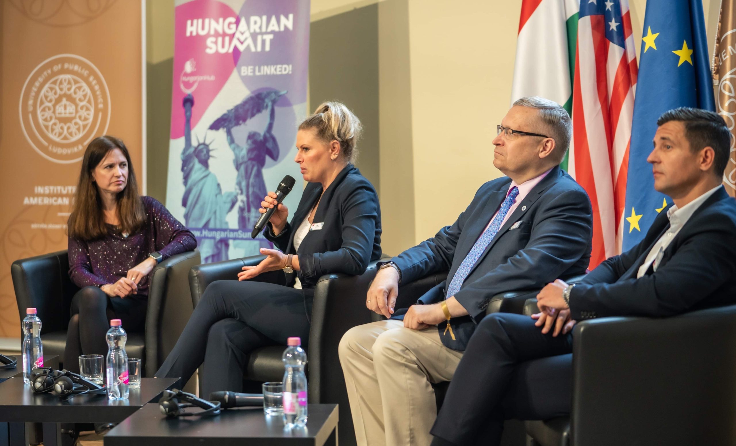 In the evening, a grand gala dinner took place, hosted at the University of Public Services. The dinner proved to be a remarkable occasion, featuring a panel discussion with three former Hungarian ambassadors to the United States - Ambassador György Szapáry, Ambassador Réka Szemerkényi, and Ambassador László Szabó. The esteemed panelists shared their diplomatic experiences and insights, highlighting the significance of strong bilateral relations between Hungary and the United States.